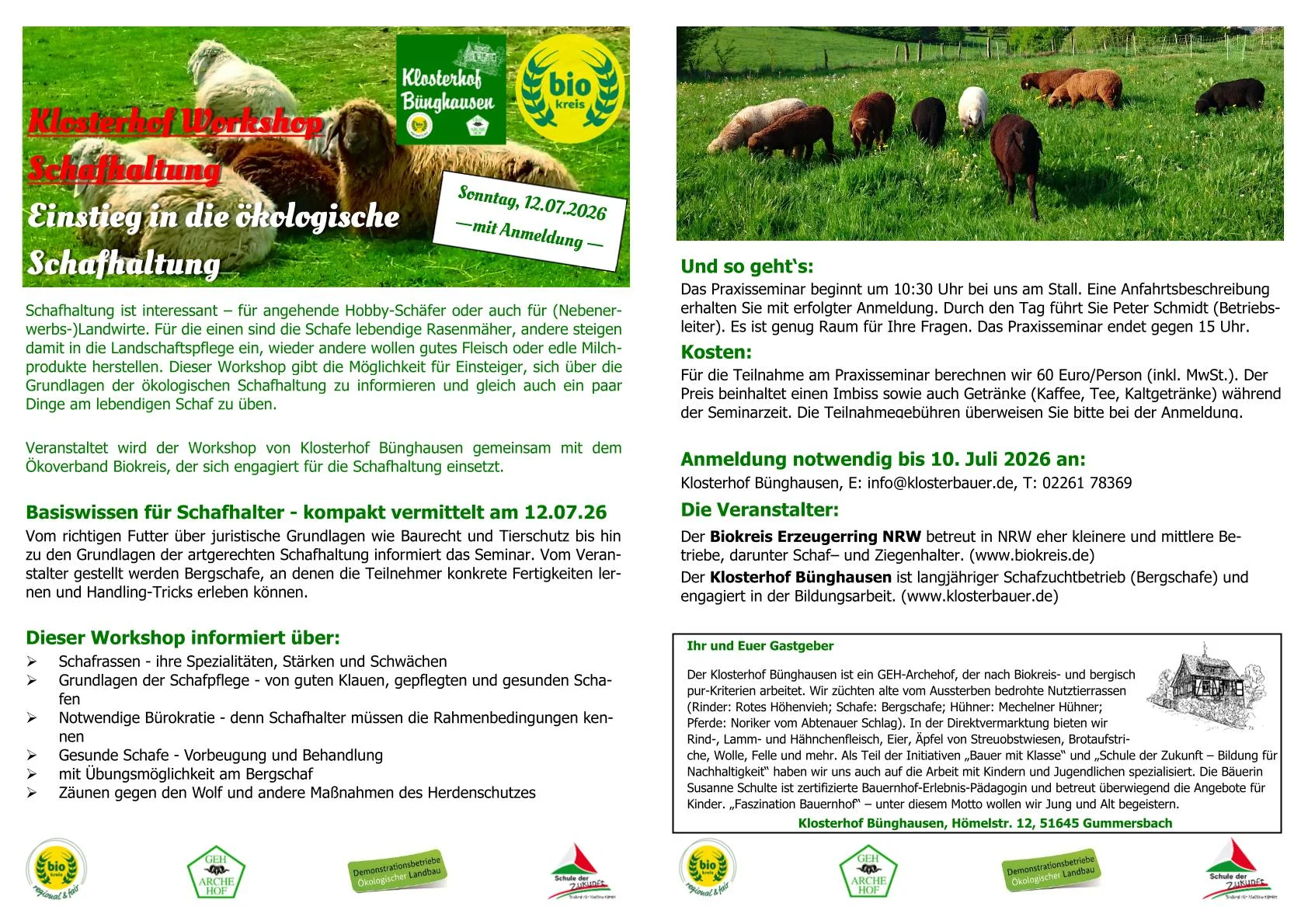 Veranstaltet wird der Workshop von Klosterhof Bünghausen gemeinsam mit dem Ökoverband Biokreis, der sich engagiert für die Schafhaltung einsetzt.